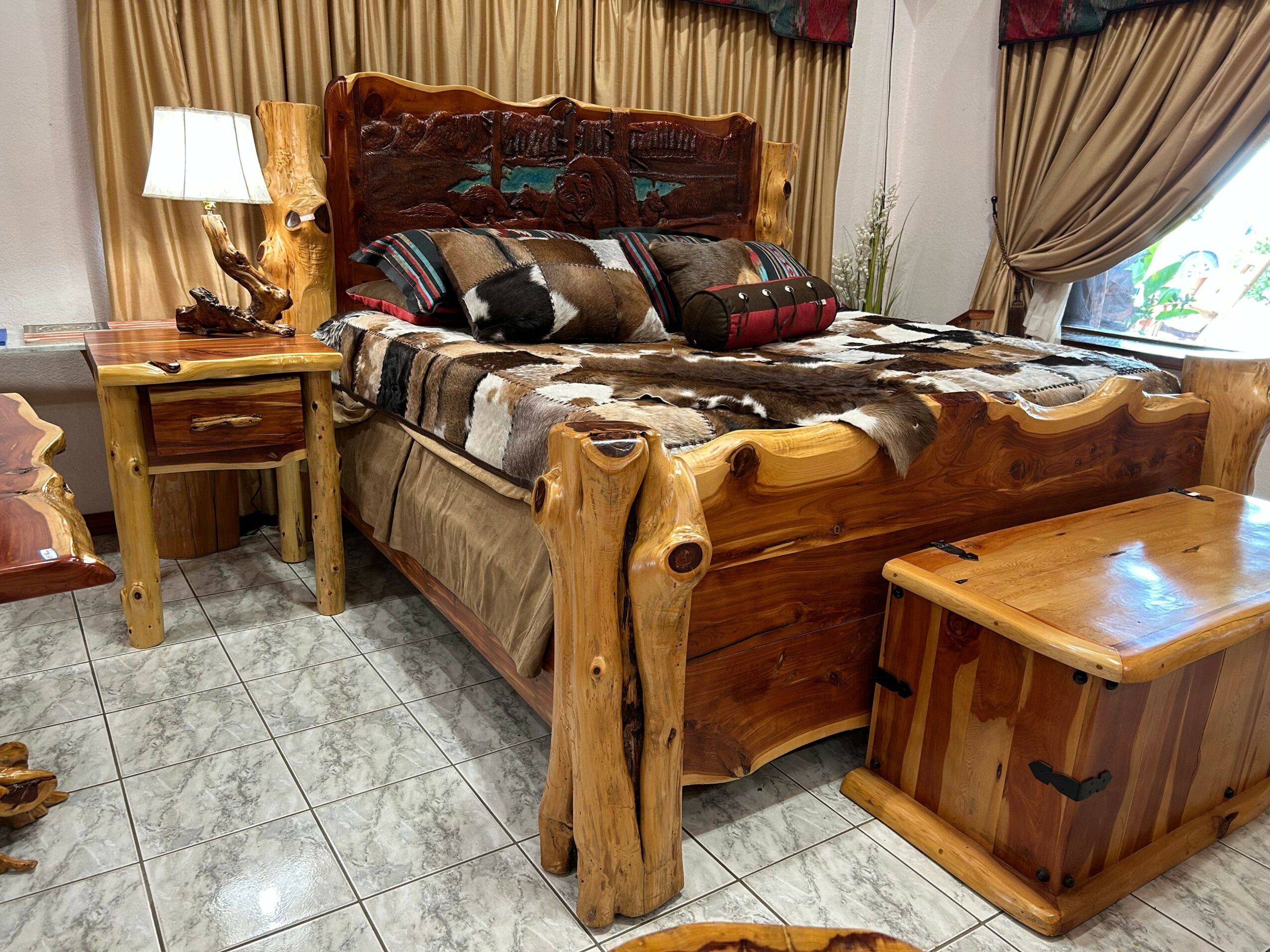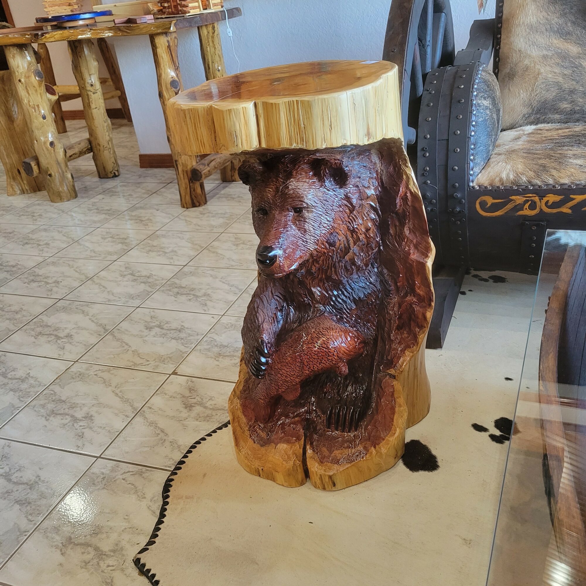 Most of these images are pieces of custom order but can be done again. They are one of a kind handmade. I can carve any animal and we do custom work on the furniture.