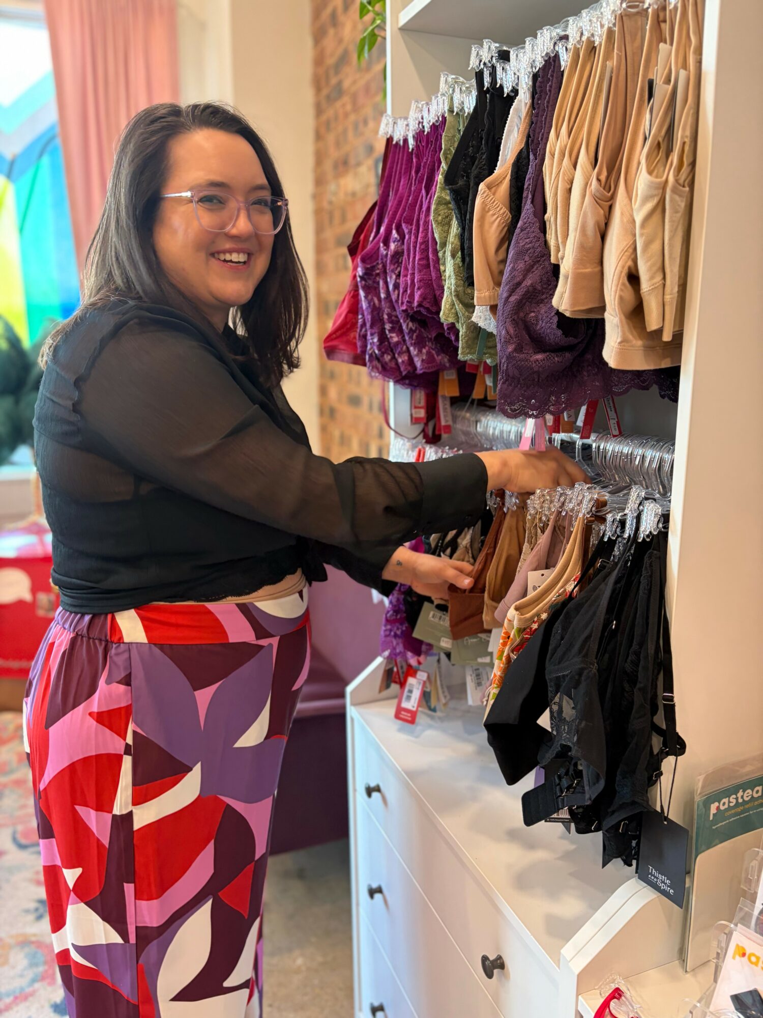 Beyond bras, we stock a wide array of sleep and loungewear, lingerie, and bathing suits in all sizes. We are also proud to welcome our LGBTQIA+ community looking for undergarments that work for their specific needs. Our customers come from all walks of life, are all sizes and ages, and have become such a beautiful community. Each customer comes to us with their own story, and we take our job seriously to listen with empathy and compassion to help them find what they need. It may sound corny, but undergarments are truly such intimate garments, it can be a loaded shopping experience for many, and we are here to make it as fun and easy as possible.