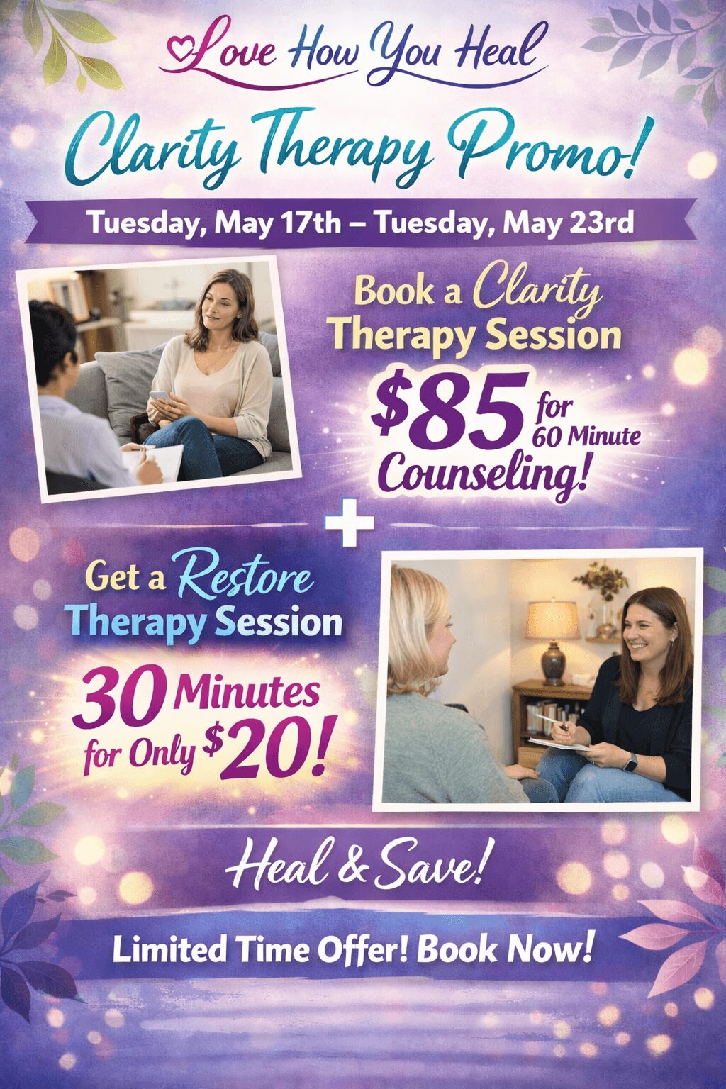 • Individual Sessions (50–60 minutes) – Starting at $85 per session