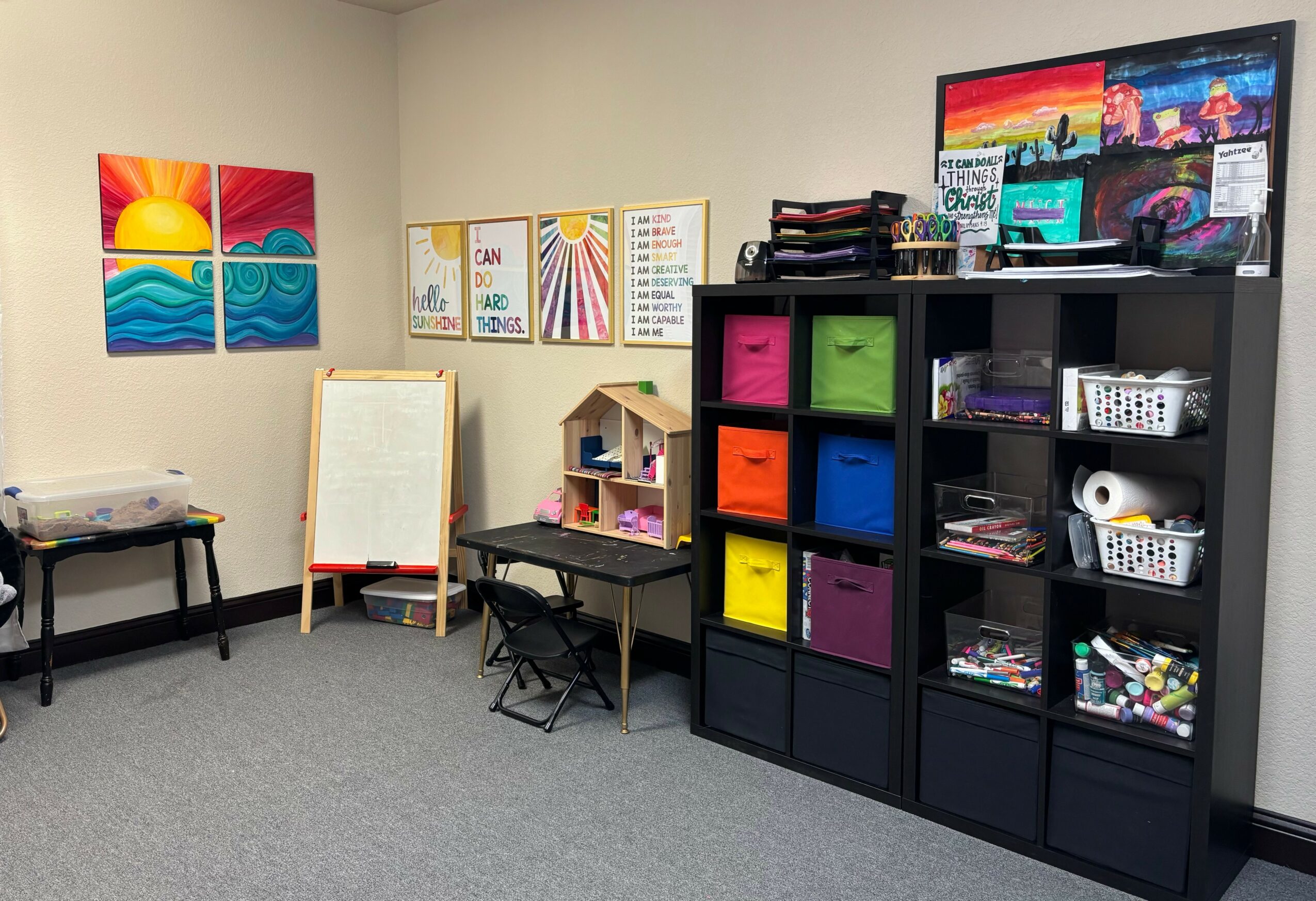 Some clients feel most comfortable relaxing on the couch while talking, and some clients prefer to play games, do art, or take a walk while talking. I take a Person-Centered approach so I am happy to accommodate my clients needs with different activities. I know I have done a good job connecting when a client brings their journal, a favorite toy, a four square. ball, or a poker set to session.