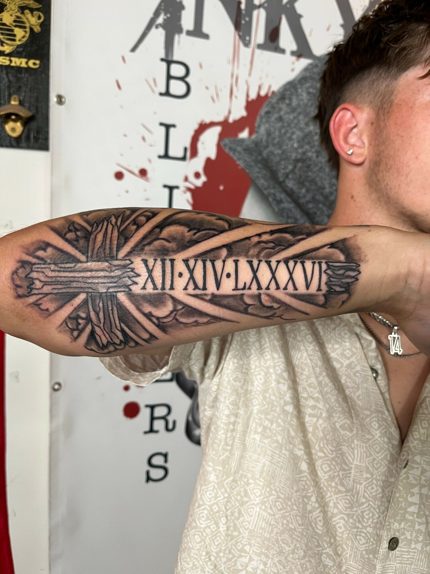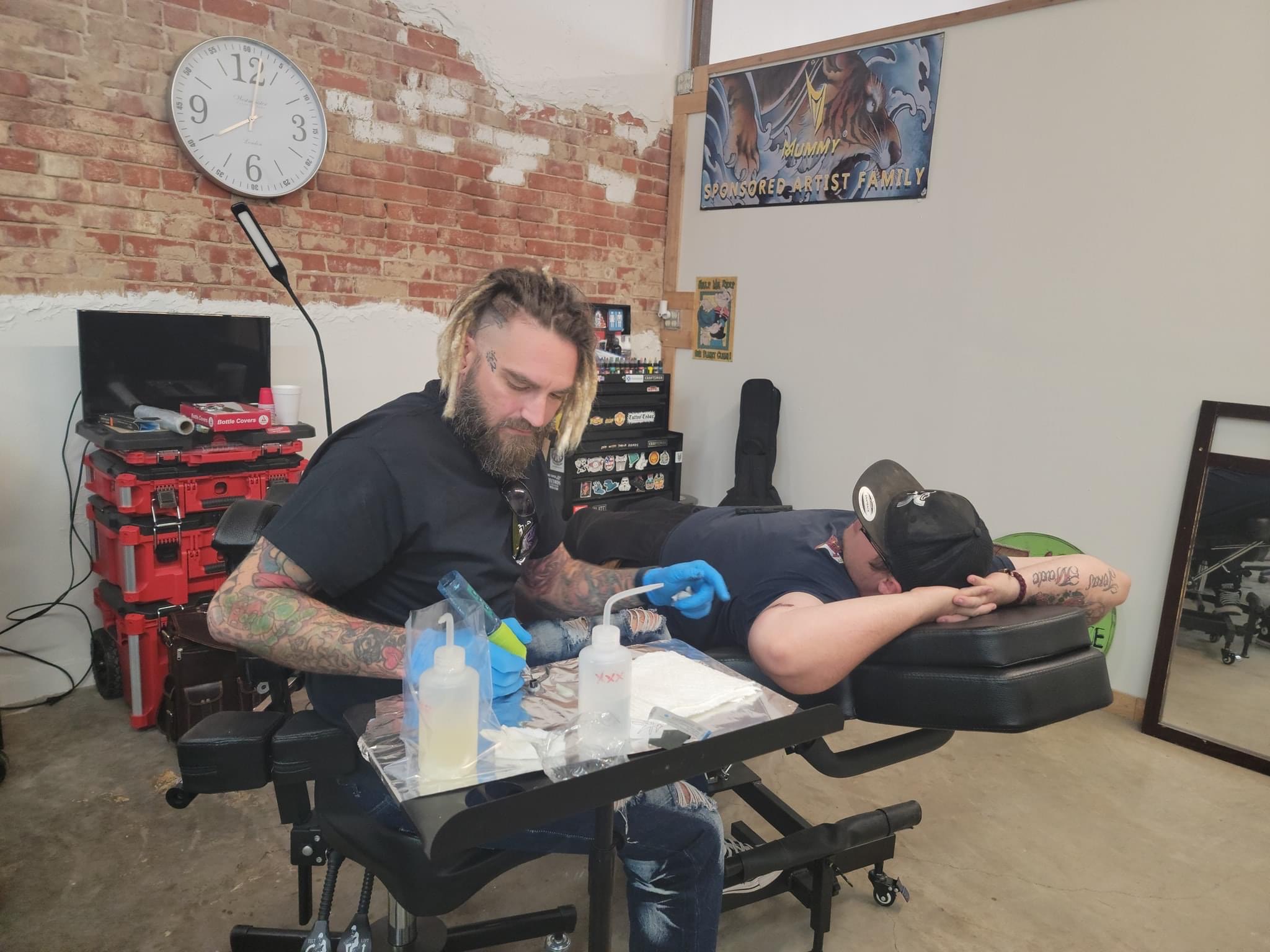 I have been a professional tattoo artist for 20 years. I served in the Marine Corps right out of high school, and after getting out of the military I returned to the trade taught to me by my father. I worked as a plumber as I learned how to tattoo. I spent years working late nights in walk-in tattoo shops, learning the ropes, the styles, the equipment, and the sterile procedures needed for a long healthy tattoo artist career. In my 30s, I had the opportunity to take some business education and soon felt equipped to open my own business. In 2019 I founded Inky Blinders Tattoo, with the help of my wife Heather, and my good friend Sean as an investor. We found success in promoting fundraising for our local volunteer fire department, and offering discounts to veterans, teachers, healthcare workers and first responders. In our years in business, we have hosted multiple award winning tattoo artists, and served thousands of tattoo collectors in the Dallas and surrounding areas.