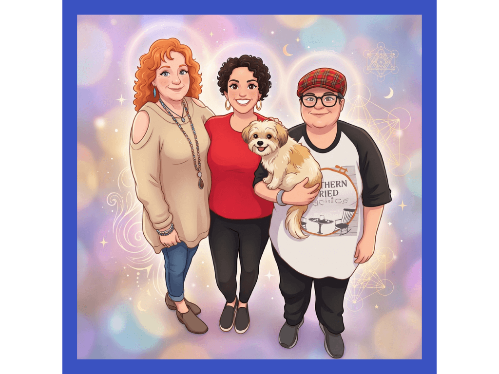 I’ve always been a seeker. Some of my favorite authors like Marianne Williamson, Caroline Myss, Louise Hay and Rebecca Campbell have been integral in shaping how I see life and my love of the metaphysical. I never imagined being able to build a business around it. In 2025, I went to the Grapevine Wellness Expo for my first time, where I met Lezli, the Purple Rose Psychic. She had been doing channeled readings for friends and family for years, but had just begun stepping into her psychic work professionally and was learning how to navigate the ever changing world of social media. For weeks, I felt a nudge to reach out and offer my support with brand design and social media and I’m so glad I finally did — she became my first client. That one meeting led to referrals, friendships, a podcast with Ashwani from Southern Fried Psychics, and a growing community within the metaphysical space across Dallas–Fort Worth. I found my people.