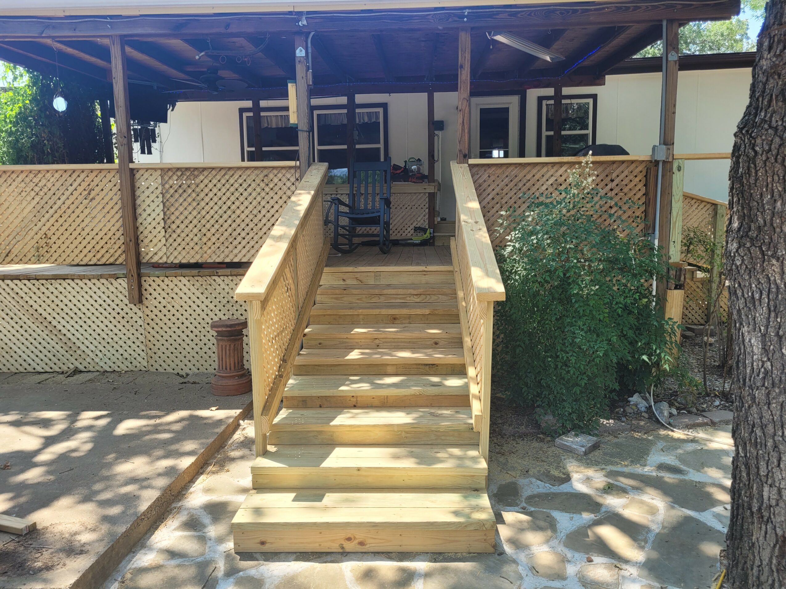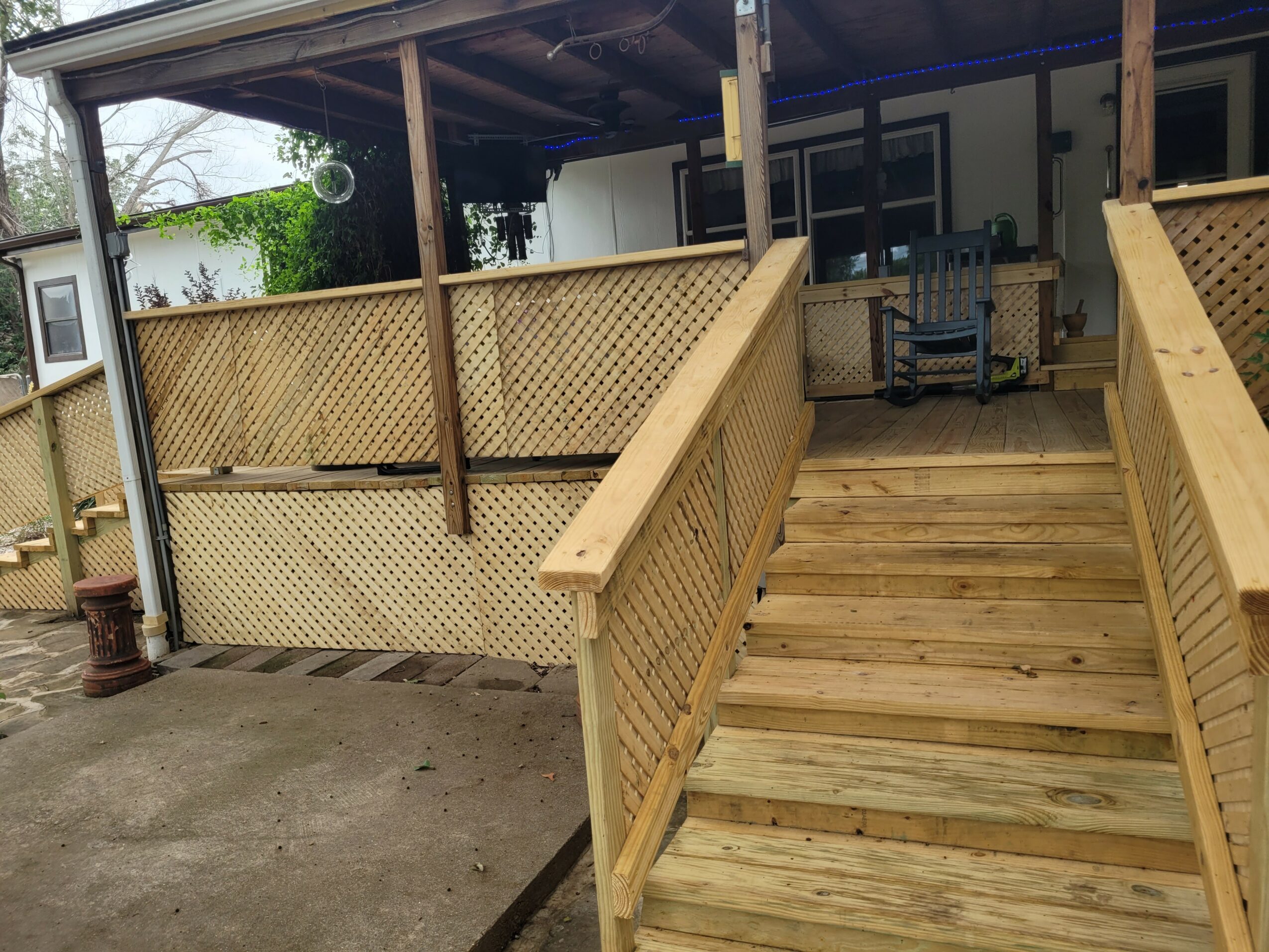 I am an expert in coatings. I can inspect a house, recommend repairs and then determine the best products to use to ensure a long lasting, protective finish to ensure the beauty of your home and protect your investment. I also am an expert in the construction of decks and exceed recommended load, length and span for the type of treated lumber used. This eliminates sagging and wobbling and ensures your safety. I excel at deck design and the construction of low impact steps. These types of steps are easier to use and help older and people with knee issues to get up and down without pain. Ive included several pictures of various decks with low impact steps that ive built. All of my skilled technicians have my motto drilled into them until it becomes second nature. “We Care and Pay Attention to Detail!”