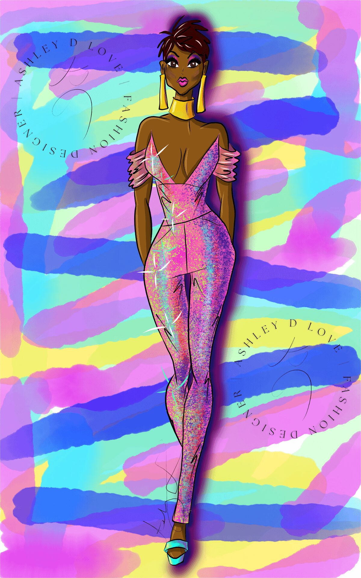 I’m Ashley Love—a fashion designer, fashion illustrator, and fashion professor. I teach Fashion Merchandising at Tarrant County College–Northeast and work as an art instructor with YMCA Fort Worth. I also run my freelance business, Ashley D Love, where I create fashion designs and illustrations for both start-up and established brands. What makes my work unique is my dedication to illustrating and celebrating Black women in fashion.