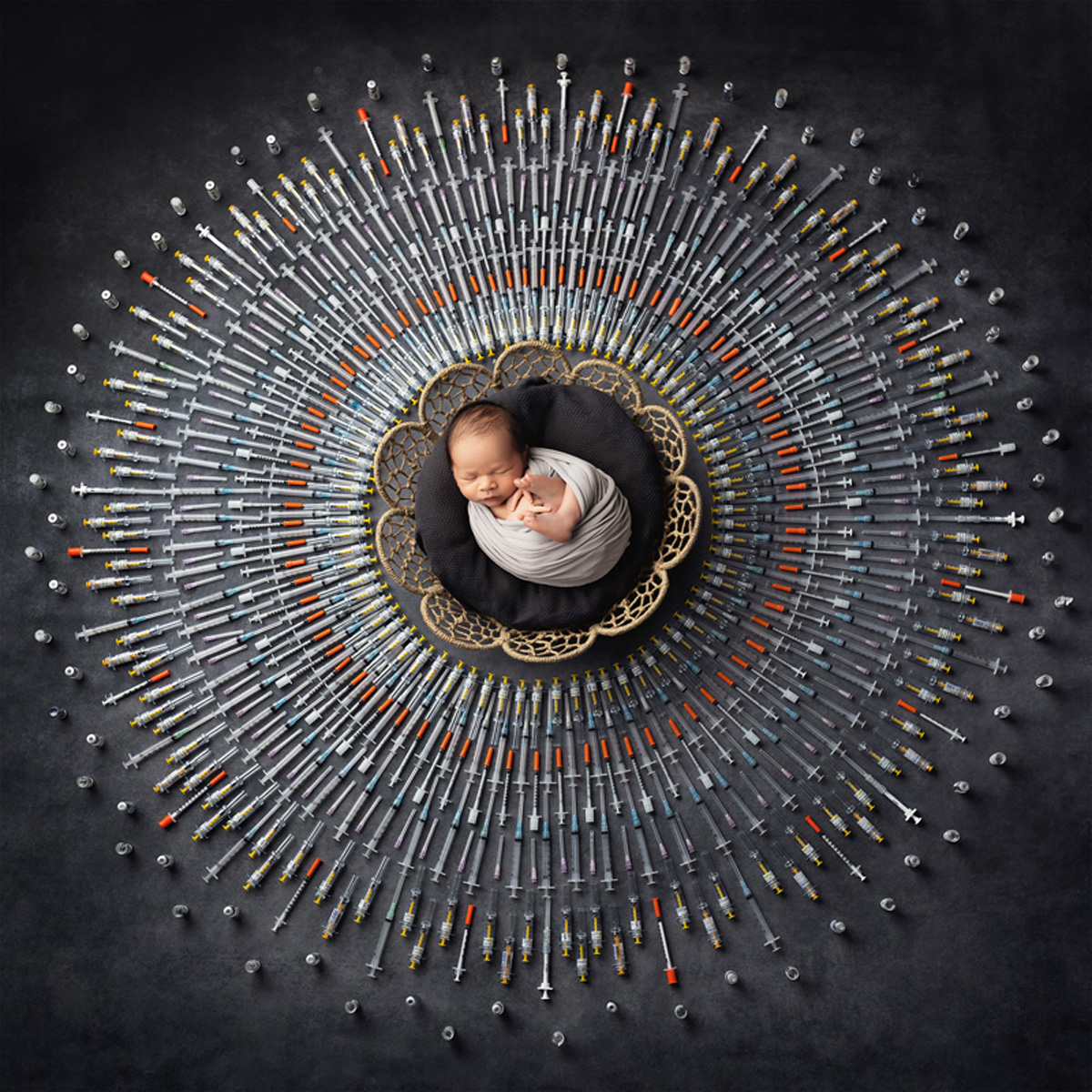 A recent session that I’m incredibly proud of was a newborn photoshoot where the mother gave me all of her IVF needles to incorporate into the image. I spent hours carefully arranging each needle by hand to form a beautiful, symbolic design. As I worked, I was moved to tears by the sheer number of needles and the story they represented—the perseverance, sacrifice, and profound love that led to this baby’s arrival. Creating that image reminded me why I do what I do: to honor each family’s unique journey and transform it into meaningful, lasting art.